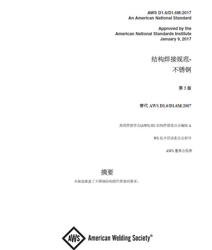 AWS D1.6/D1.6M:2017中文版 結構焊接規范-不銹鋼
